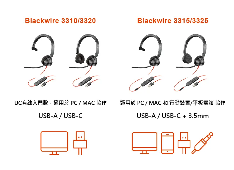 hp poly Blackwire 3300 系列 有線UC 耳機 系列介紹
