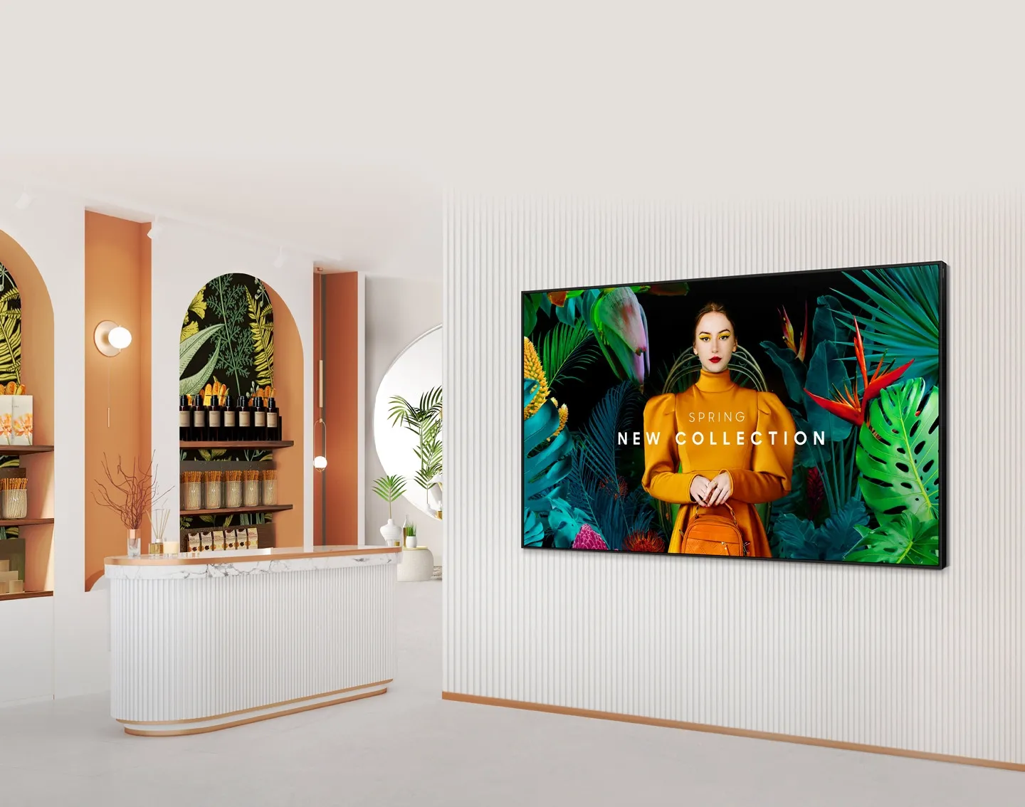 絕無僅有的 28.5mm 超薄機身設計,是 Samsung UHD 系列中最薄的選擇。搭配零間隙壁掛架,輕鬆壁掛安裝,符合不同的空間需求。QHC/QMC/QBC系列的流暢線條設計,空間利用最佳化,完美融入你的業務。