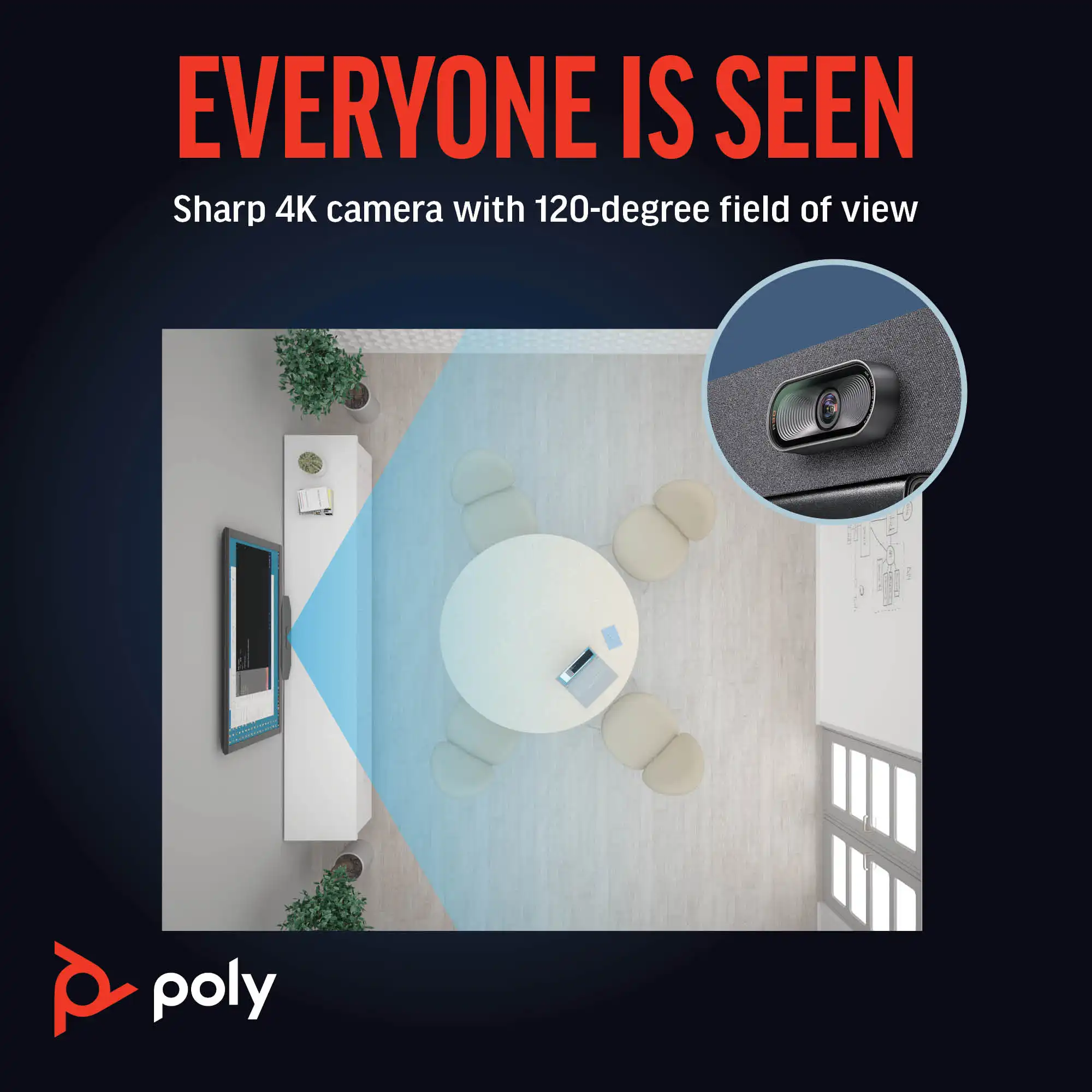 4K UHD 攝影機 + AI 智慧取景,確保遠端協作更高效。