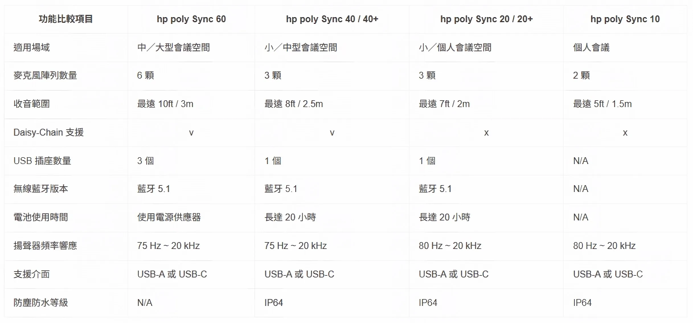 hp poly Sync 20 揚聲器為 商務差旅人士與混合辦公專業人士 打造,內建 三麥克風陣列,搭載 Poly Acoustic Fence 技術,有效消除環境噪音,讓遠距通話與視訊會議更清晰。