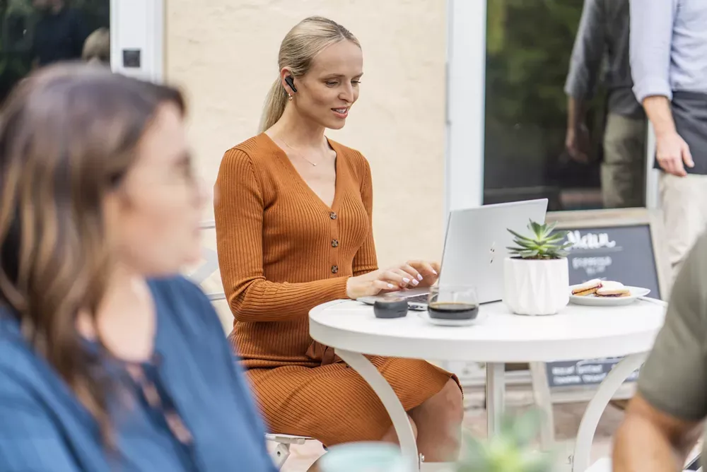 hp poly Voyager Free 60 真無線藍芽耳機專為 行動辦公族與頻繁遠距會議的專業人士 打造,搭載 三顆降噪麥克風,結合 WindSmart 技術,智慧識別環境噪音,即使在戶外或嘈雜環境中,通話依然清晰順暢。