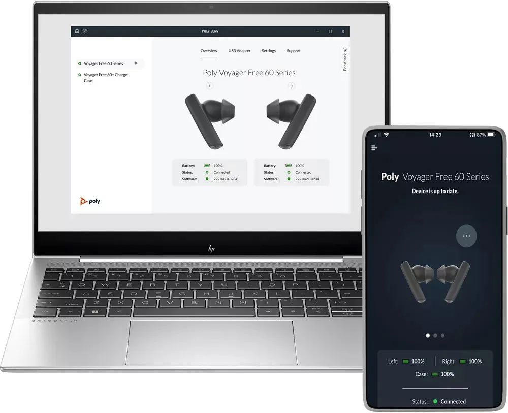 hp poly Voyager Free 60 系列隨附 Poly Lens 桌面、iPhone 和 Android 應用程式,因此用戶和 IT 可以自定義。由於它們針對通信平台的使用進行了優化,並獲得 Microsoft、Zoom、Google 等普及的虛擬會議提供平台認證,因此它們將在其平台上提供最高標準的音頻質量。使用 Lens Cloud 管理系統,IT 可以主動配置和管理 Poly 耳機的整個部署,並獲得更多的資訊數據分析。